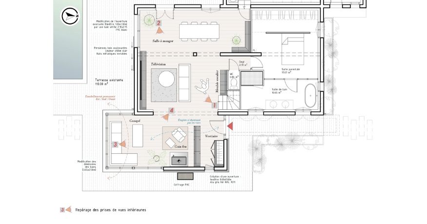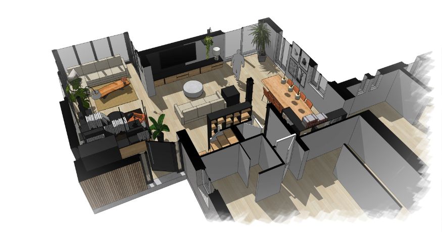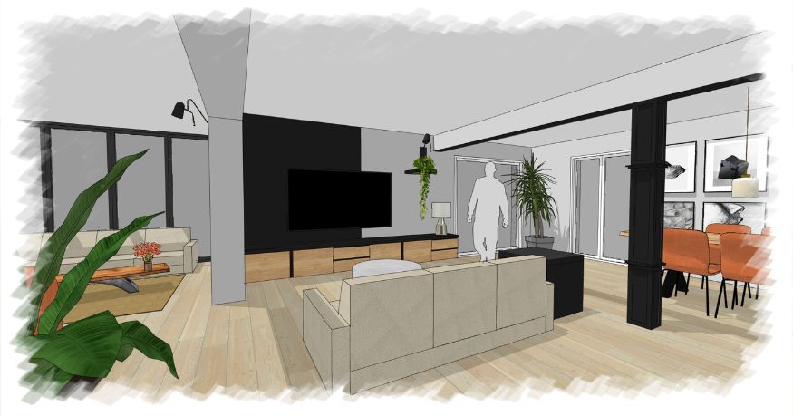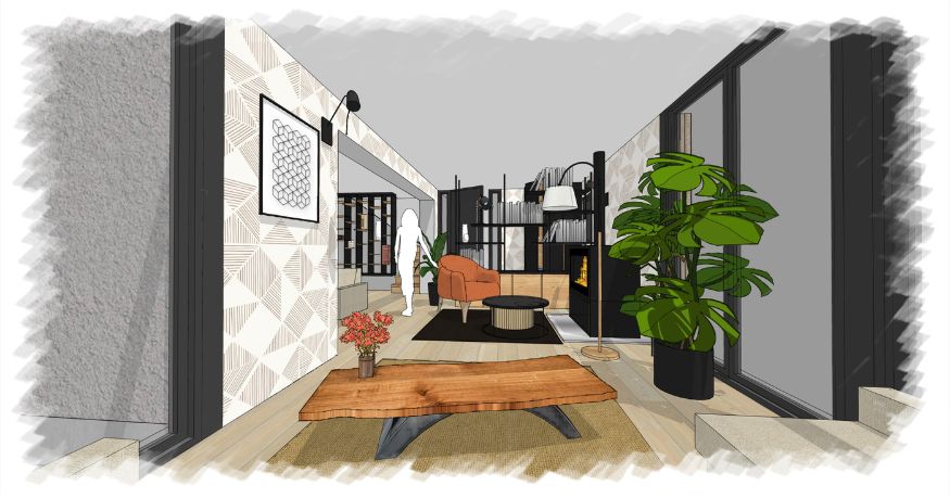Ce projet porte sur la reconfiguration intérieure d’un séjour existant et la création d’une extension, avec pour objectif principal d’assurer une continuité architecturale fluide entre les volumes d’origine et le nouvel espace créé. L’enjeu consistait à intégrer l’extension de manière naturelle, afin que celle-ci s’inscrive dans la maison sans générer de rupture perceptible.