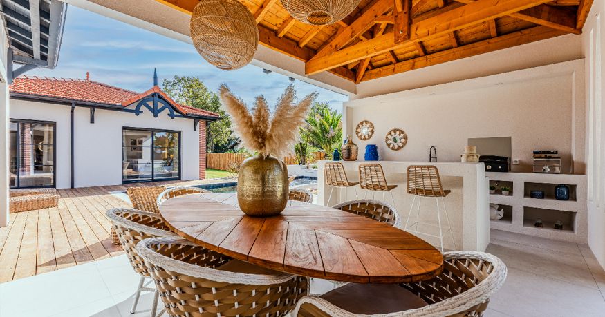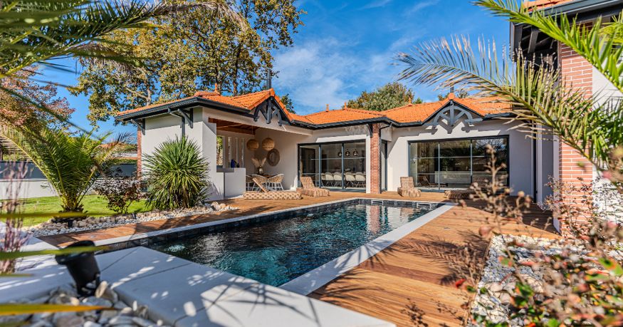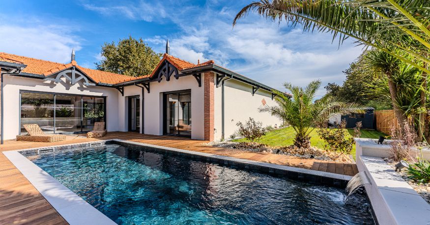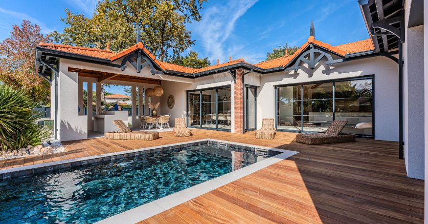 Le style architectural retenu s’inspire des maisons balnéaires typiques du Bassin d’Arcachon. Dans cet esprit, le projet intègre des éléments de modénature caractéristiques tels que des fermes décoratives surmontées de flèches, des chaînages d’angle marqués, ainsi qu’une couverture en tuiles de Marseille à emboîtement. Certains murs seront habillés d’un bardage bois à couvre-joint, en référence aux constructions traditionnelles de la région.